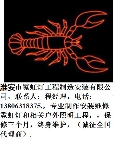 淮安市霓虹燈照明工程制造安裝維修有限公司,聯系人:程經理,電話:13806318375.,專業制作安裝維修霓虹燈和相關戶外照明工程,價格:750元/平方米,保修三個月,終身維護,(誠征全國代理商),專業從事商業門面,招牌、街道景觀的整體設計。設計制作安裝噴繪廣告牌,燈箱,LED燈飾,霓虹燈,電子顯示屏,單立柱,樓體光亮工程等等,是戶外視頻專業制作安裝公司。 [詳細介紹]