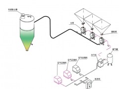 系統介紹:本系統一般采用空氣壓縮機作為氣源,倉泵、高壓旋轉閥、螺旋泵等作為供料裝置,物料由料倉落入供料裝置內,向輸送系統管道內輸入高壓氣體,讓氣體和物料充分混合,使物料流態化,然后在通過高壓氣流輸送到末端收料倉,氣體經分離裝置過濾后排入大氣;適合輸送距離長、流化性好、磨損性較大、輸送量較大的工程。