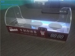 三盒裝,香飄飄奶茶杯架,透明有機玻璃制品,前后7度斜角設計,背角9度轉角,前后商標LOGO貼紙,背空吸盤吸附,可吸附在平面墻體和冰箱面.大量庫存供應